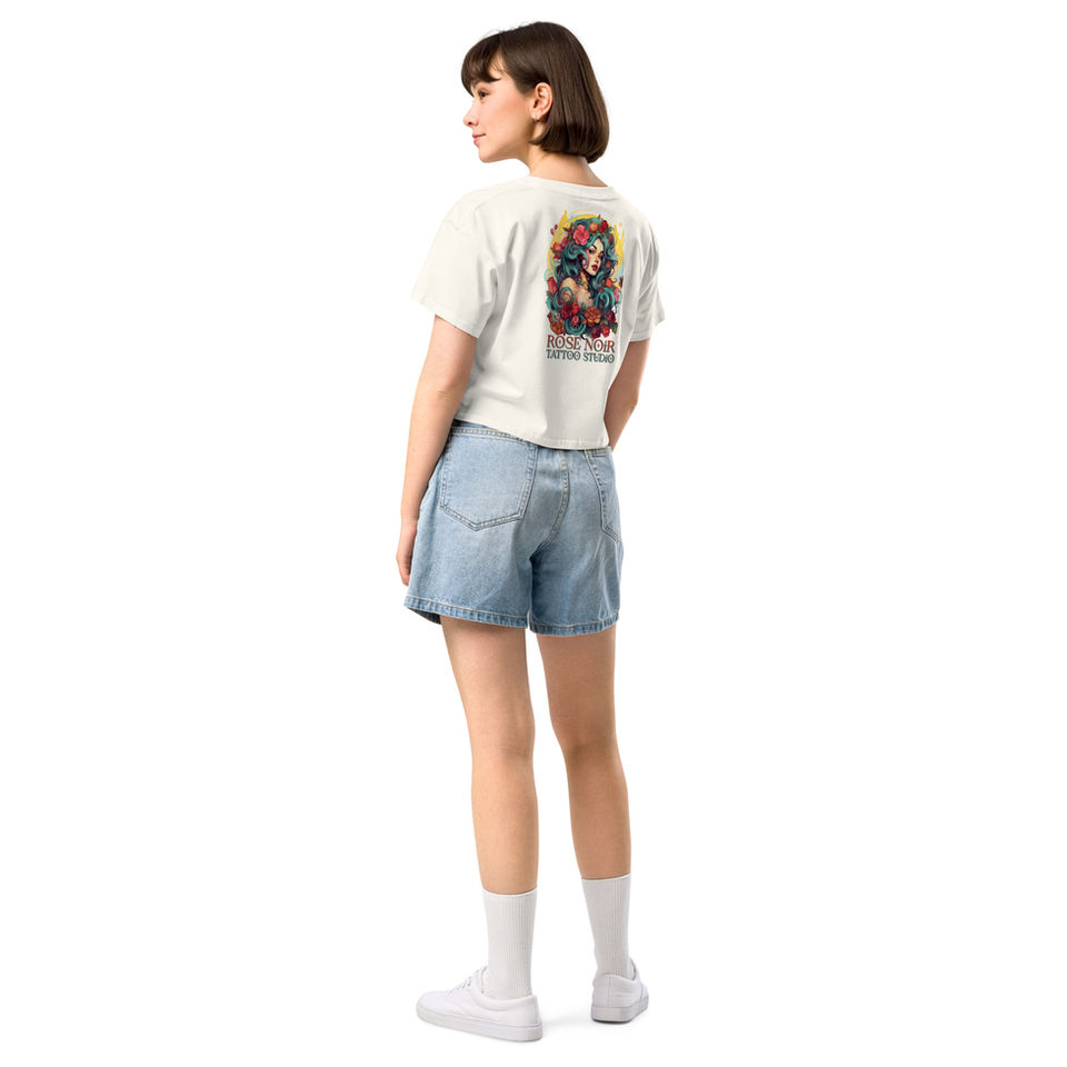 Unleash your inner Tattoo Goddess with our Women's Crop Tee, featuring the iconic Rose Noir Tattoo Studio ink logo. Designed for comfort and style, this crop top is perfect for showcasing your love for body art. Highlight your individuality and celebrate the artistry of Rose Noir Studio, where creativity meets precision. Elevate your wardrobe with a piece that not only looks great but embodies the essence of our renowned tattoo craftsmanship. Ideal for those who live and breathe the tattoo culture.